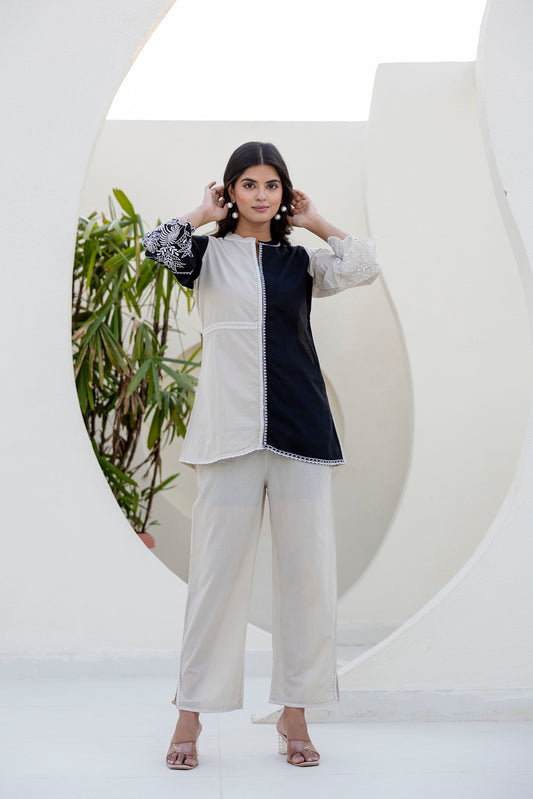 Cotton Color-block Embroidery Co-ord Set
