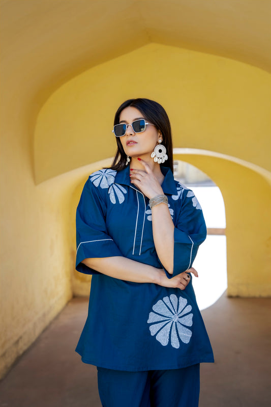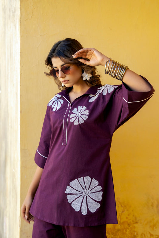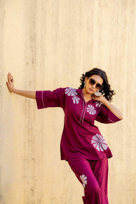 Burgundy Pure Cotton Embroidered Co-ord Set