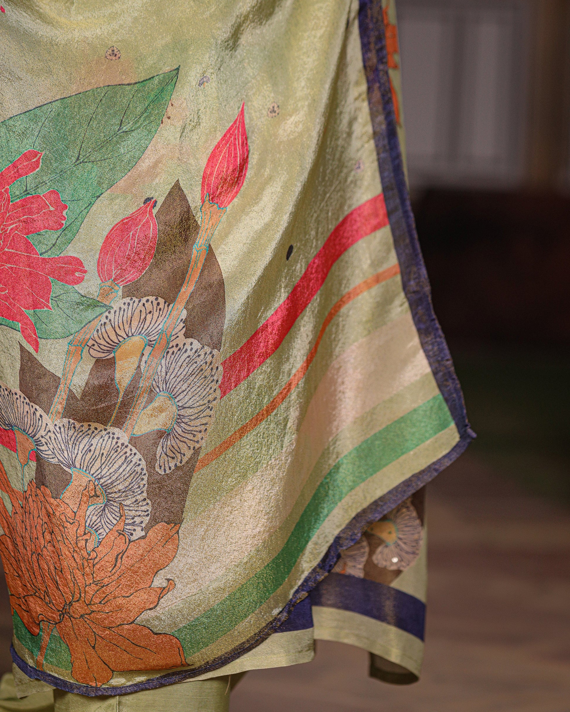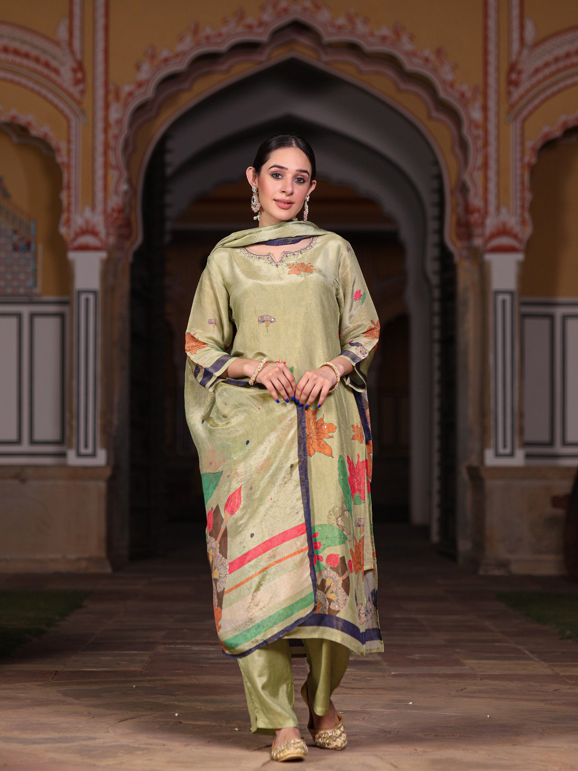 Green Floral Shimmer Suit Set