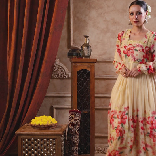 Cream Organza Anarkali Suit Set