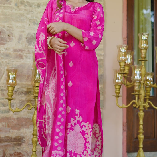 Fuchsia Pink Floral Crepe Suit Set