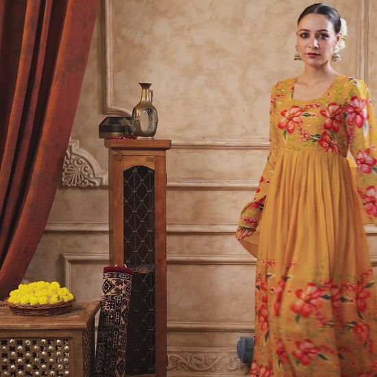 Mustard Organza Anarkali Suit Set