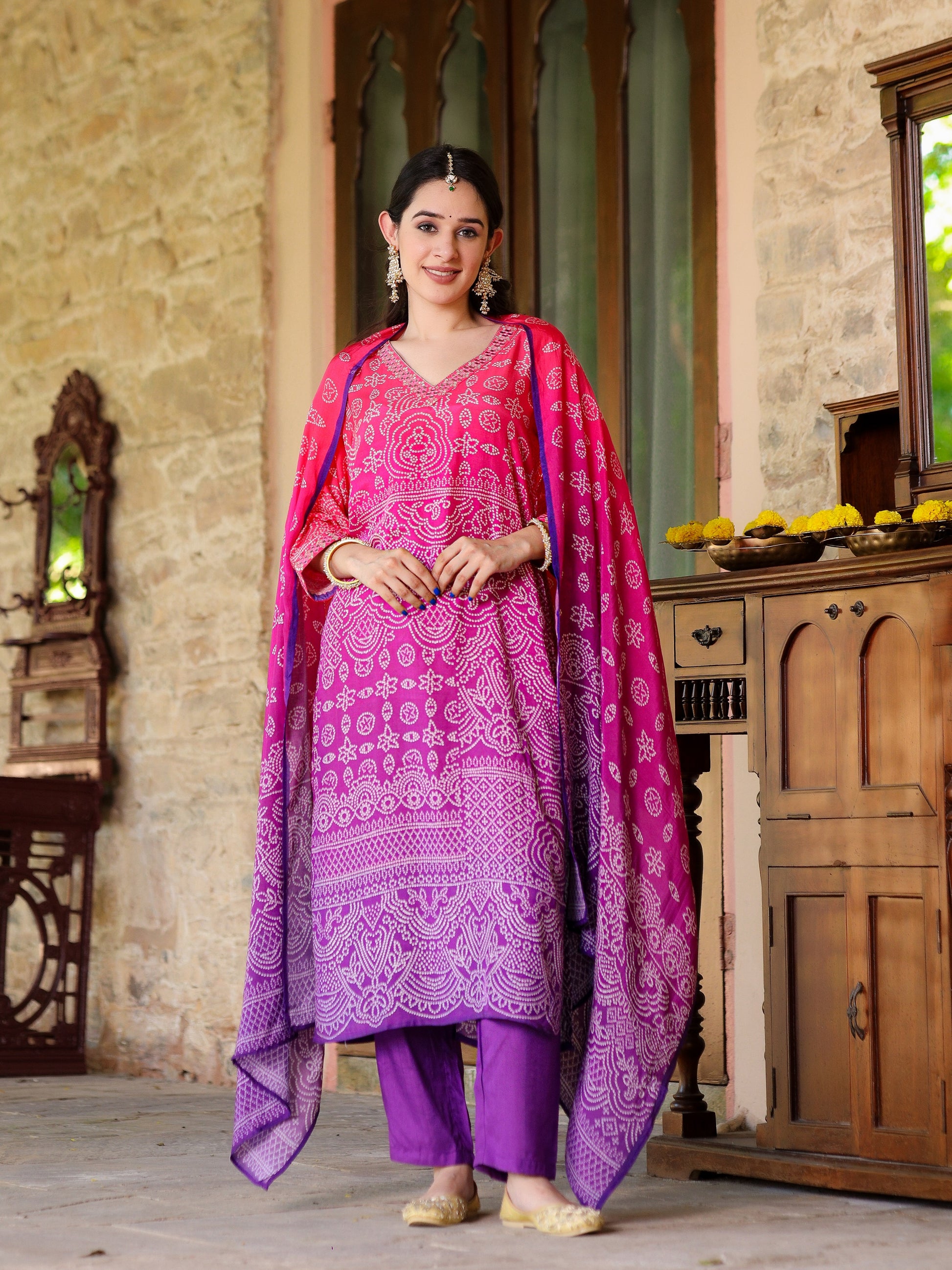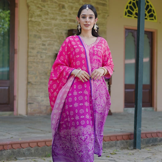 Purple Ombre Bandhni Suit Set