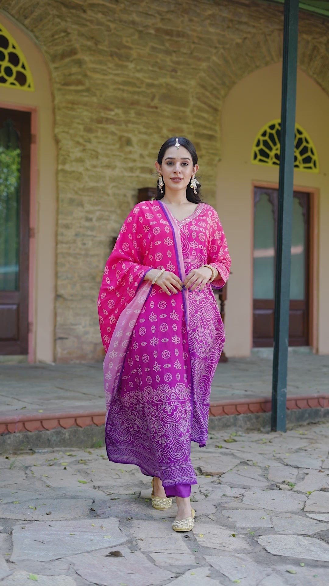 Brighten your day with this lightweight and vibrant bandhni suit set with its intricate embroidery, breathable fabric and eye-catching color palette. This three-piece outfit is perfect for to make you look your best!