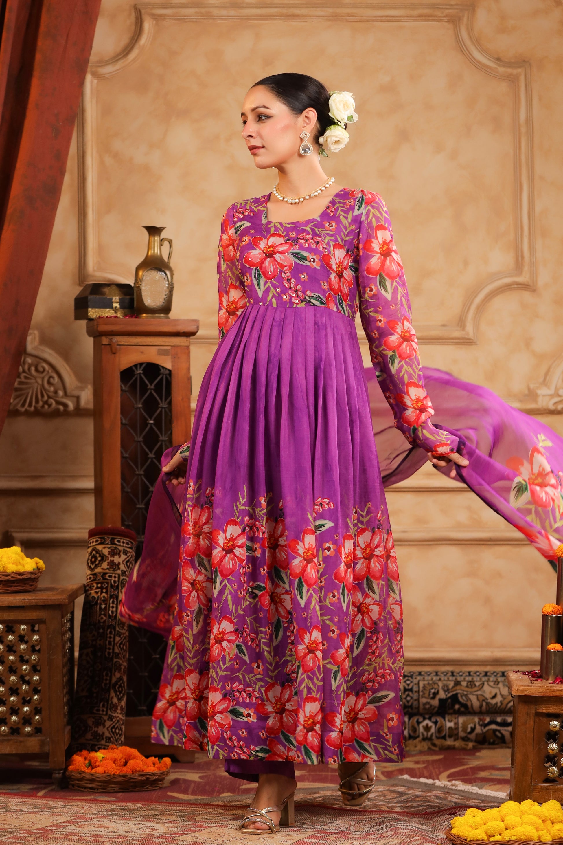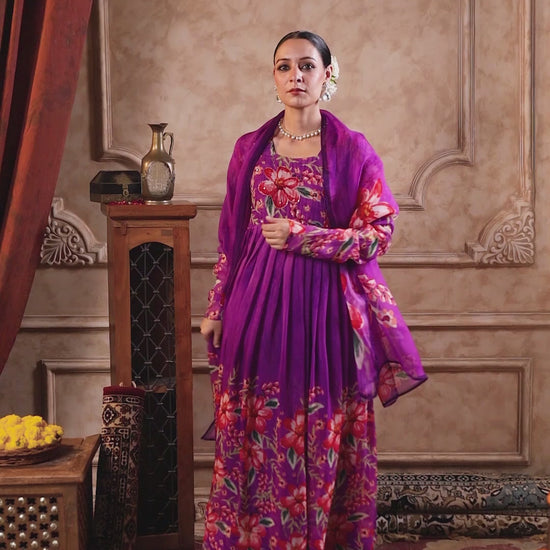 Purple Organza Anarkali Suit Set