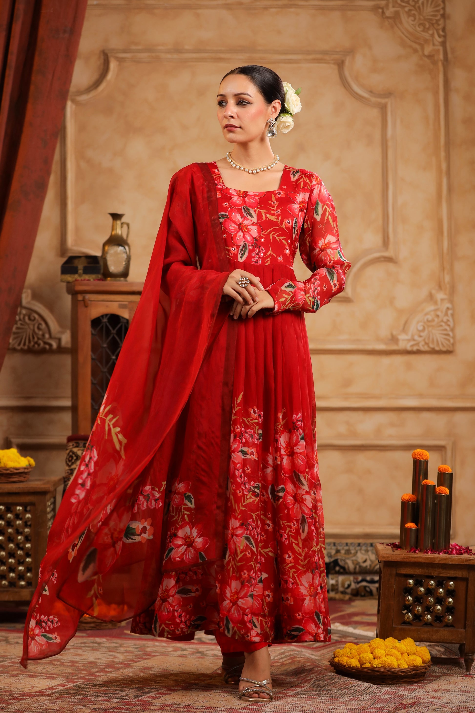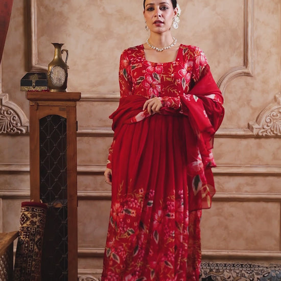 Red Organza Anarkali Suit Set